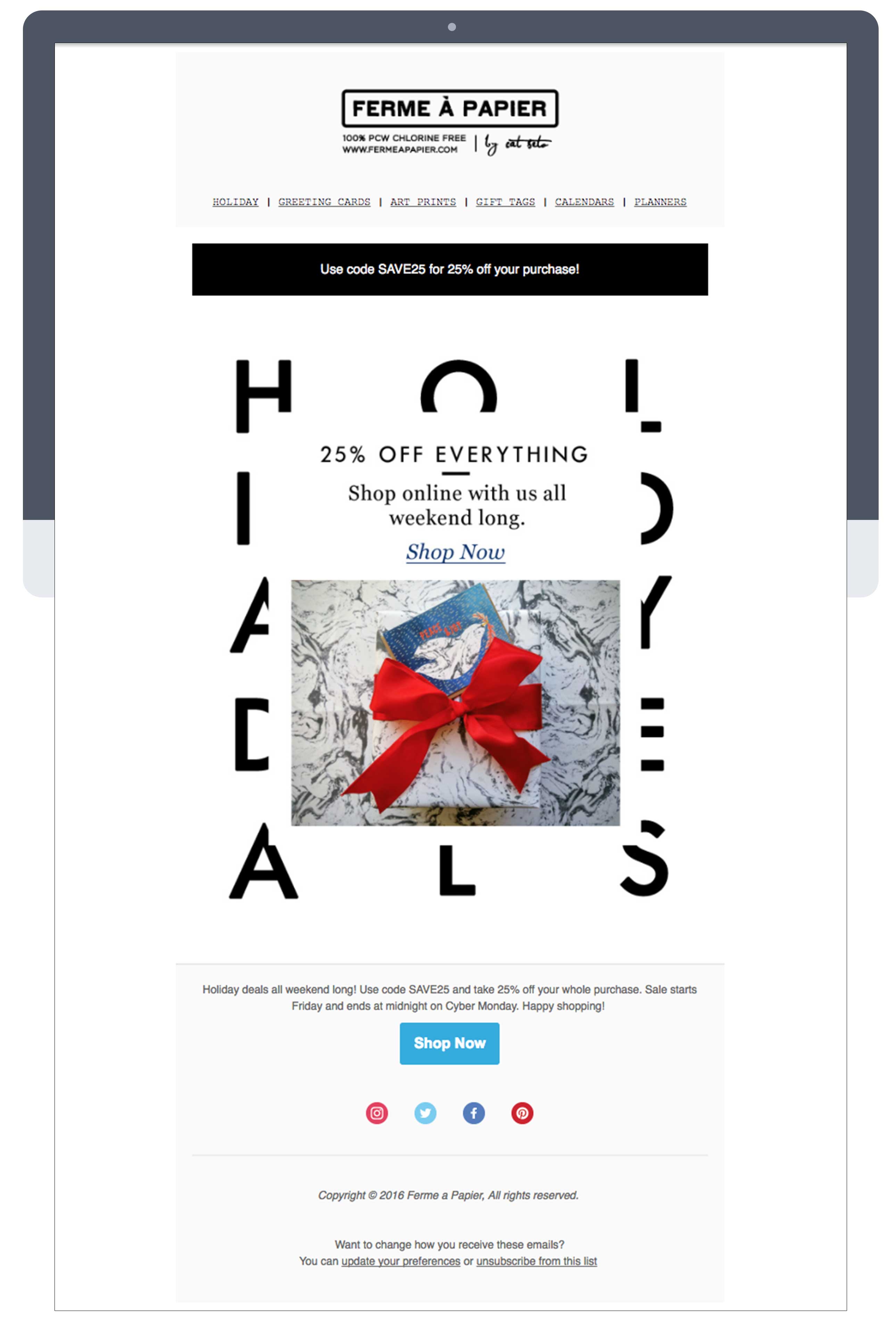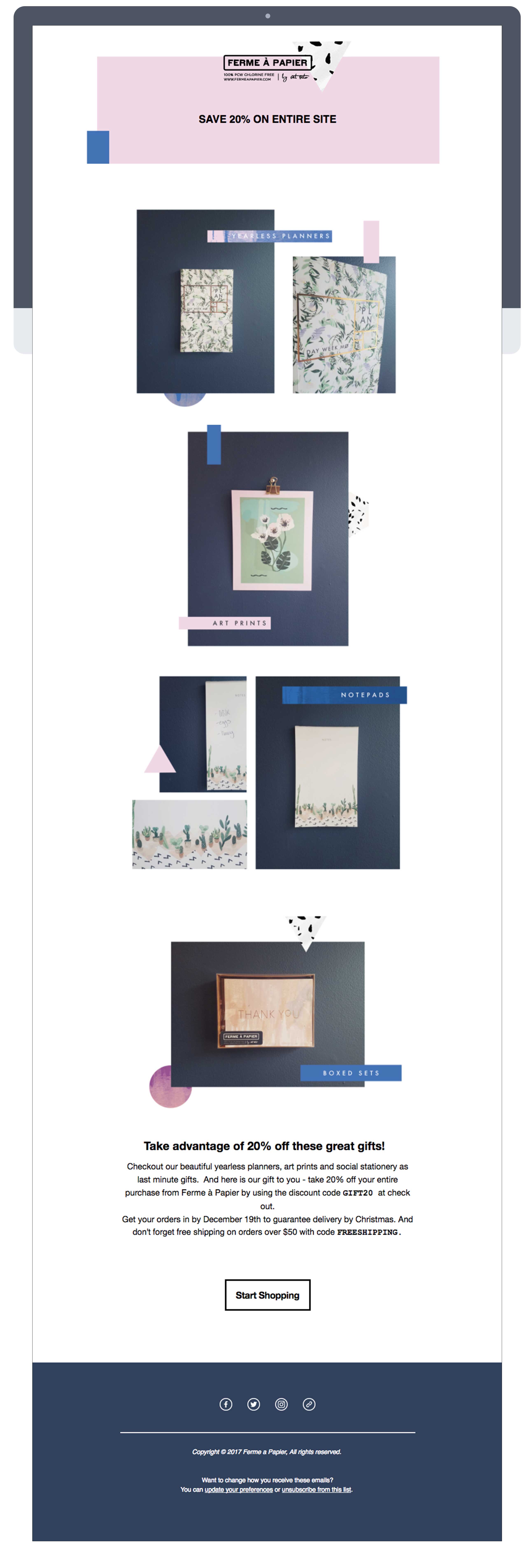 This is a small selection of the many email campaigns created by me for Ferme a Papier using MailChimp.